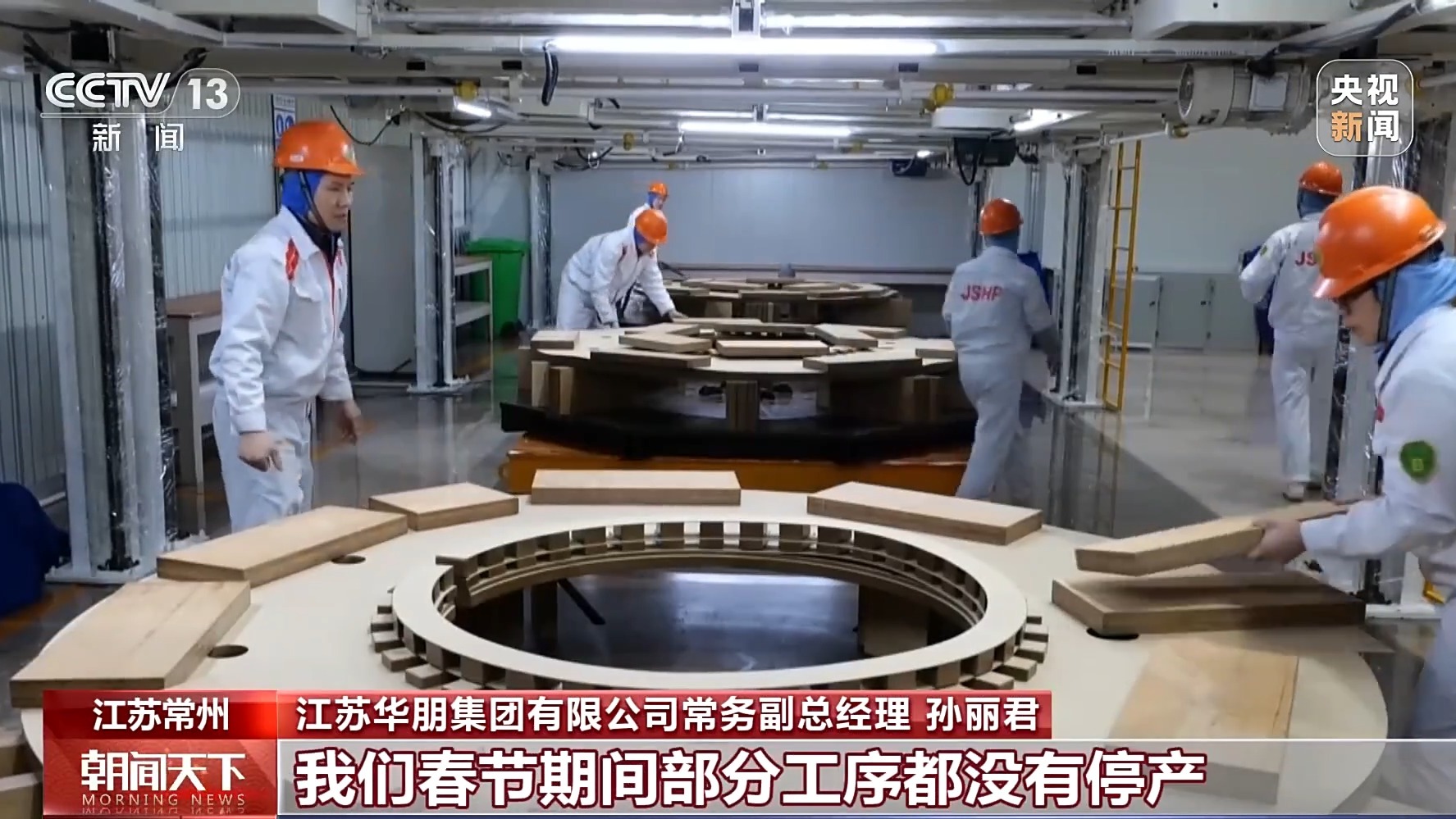 江蘇華朋集團有限公司常務(wù)副總經(jīng)理 孫麗君:眼下,我們在手訂單已超過30億元,其中出口訂單超過20億元,現(xiàn)在訂單已經(jīng)排到年底。為了搶抓工期,確保訂單按時交付,我們春節(jié)期間部分工序都沒有停產(chǎn)。