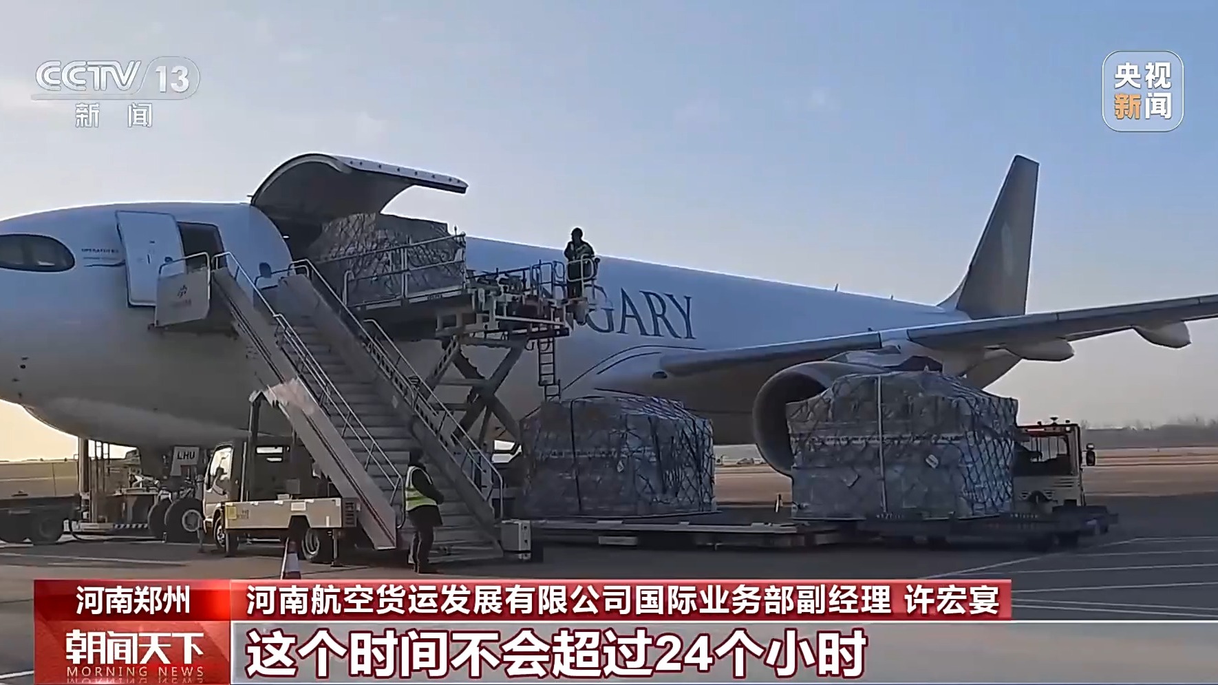 河南航空貨運發(fā)展有限公司國際業(yè)務(wù)部副經(jīng)理 許宏宴:就以時效性要求比較高的跨境電商貨物、電子產(chǎn)品來講,貨物從到達機場貨站,直至裝上飛機起飛,這個時間不會超過24個小時。對于這類時效性要求比較高的貨物來說,貨量還是維持在一個比較平穩(wěn)的狀態(tài)。