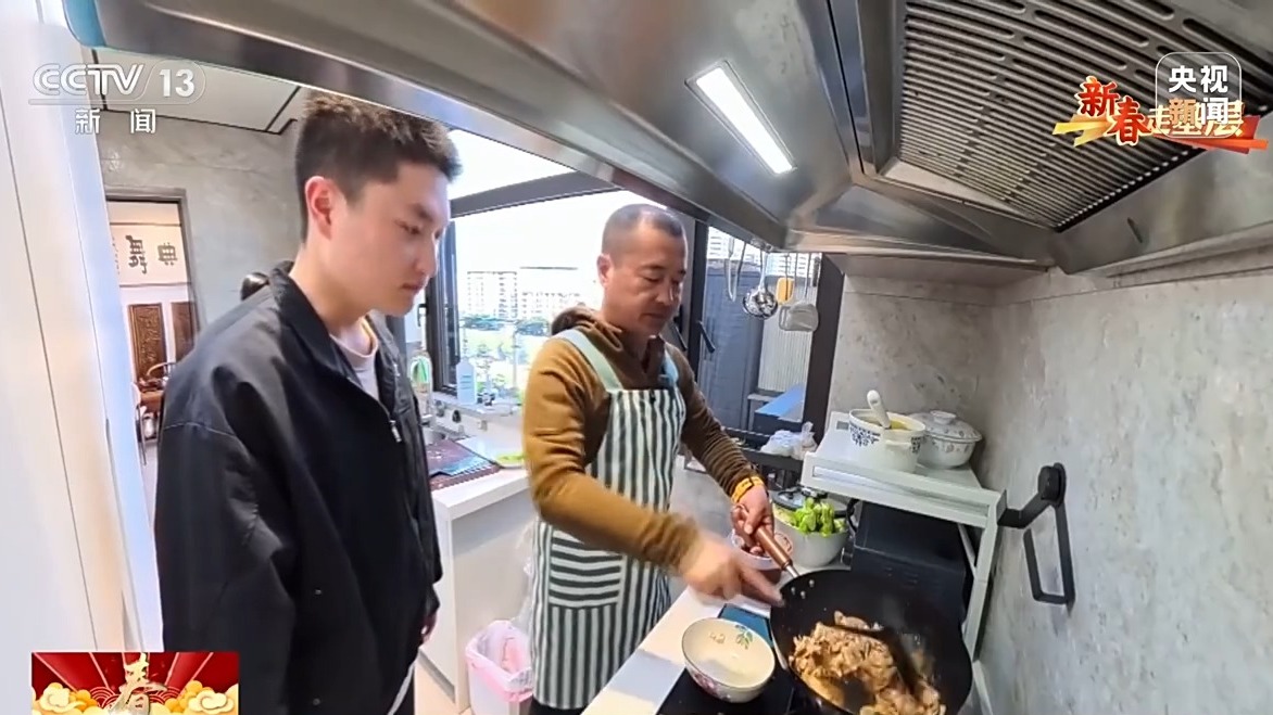 除夕當(dāng)天,楊文龍邀請(qǐng)我們到他家做客。在這里,我們看到了他鐵漢柔情的一面。在外他是忙碌的總導(dǎo)演,在家里,他則是貼心愛(ài)人。在外指揮演員方陣,在家一樣能把年夜飯做好。