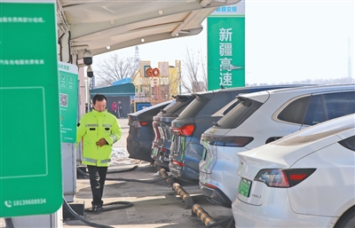 位于昌吉回族自治州的連霍高速五工臺服務(wù)區(qū),司機王可可開著新能源汽車駛進充電站,使用600千瓦的超級快充,不到10分鐘便充滿了電?!昂缺Х鹊臅r間就能滿電出發(fā),非常方便?!蓖蹩煽烧f。
