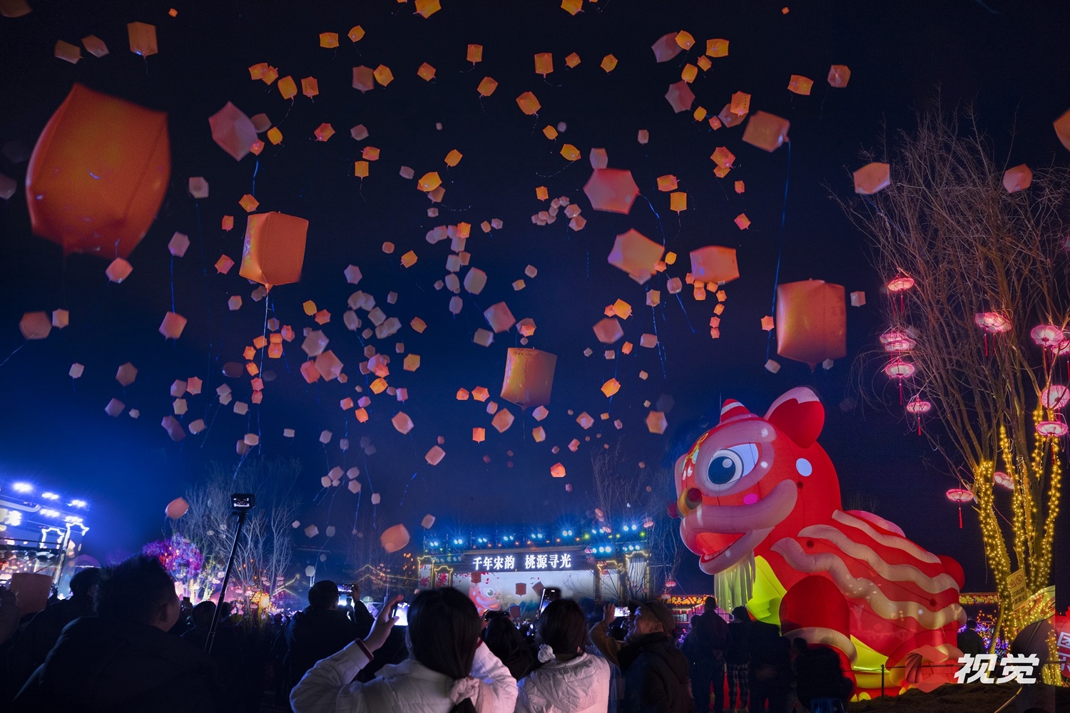 2月17日,遂寧市大英縣宋井桃源,千人同放孔明燈,祈愿國泰民安。