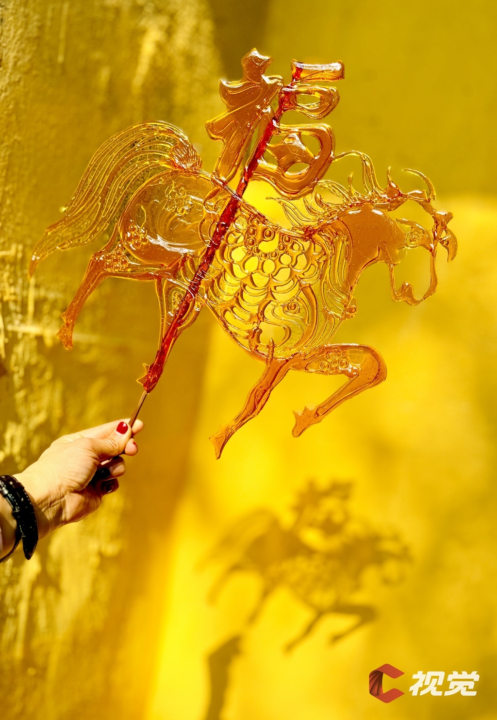 2月21日,成都市雙流區(qū)彭鎮(zhèn)老街,游客手持“馬?!碧钱?,定格馬年福氣。