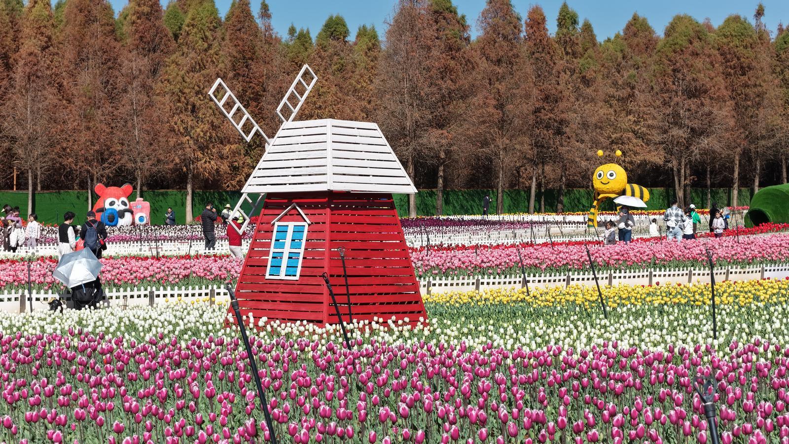 除了櫻花,這個季節(jié)昆明的郁金香也不要錯過。翠湖公園今年栽種郁金香超20萬株,品種多達26個,搭配水仙、虞美人,花潮涌動。撈漁河濕地公園的百萬株郁金香同樣迎來盛花期,紅粉紫交織成海,是踏春必去的打卡地。