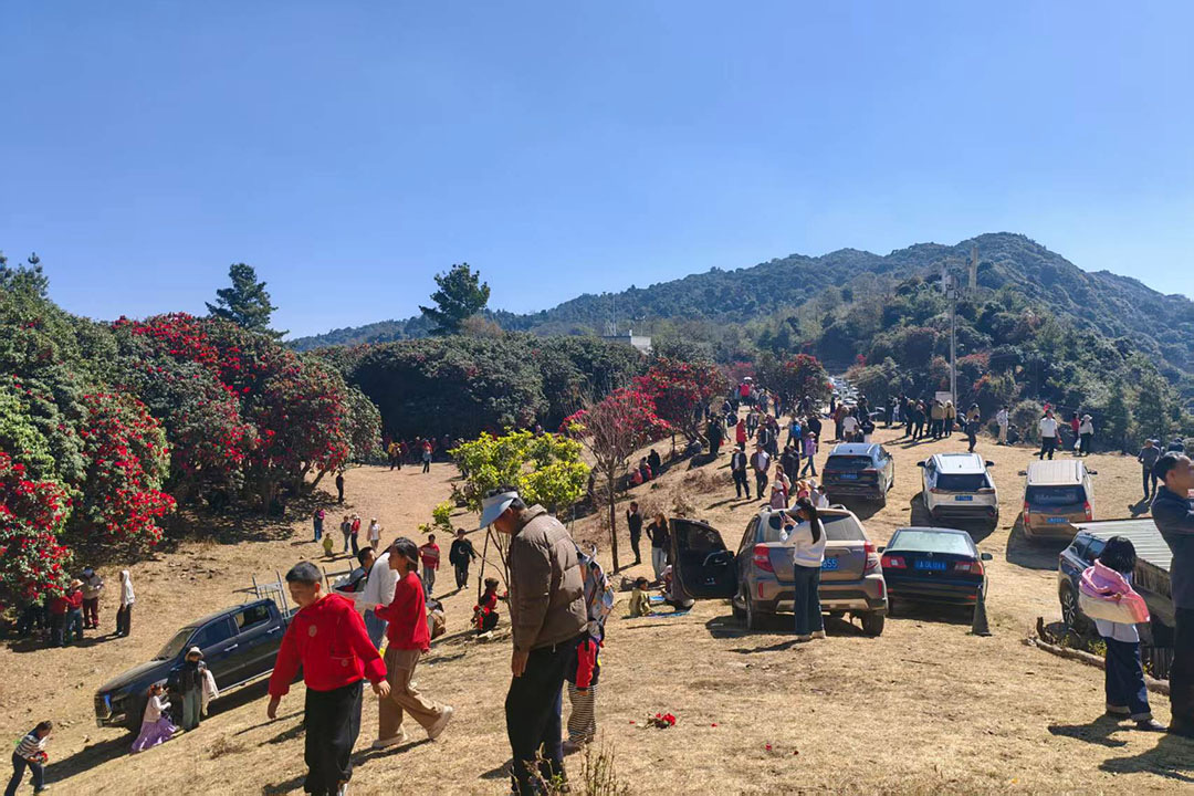昌寧天堂山,萬畝野生杜鵑染紅山野,燦若云霞。春節(jié)假期,這里已成滇西生態(tài)賞花的熱門地,游客眾多。