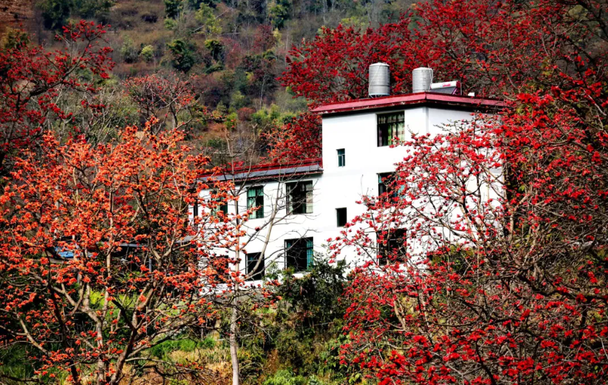 春風一吹,怒江兩岸的木棉便染紅了江岸?;鸺t的花朵如火焰燎原,鋪展成怒江最壯闊的春日畫卷。