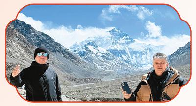法國游客古特和格蘭杰在西藏自治區(qū)的珠峰大本營。成都極自游國際旅行社供圖