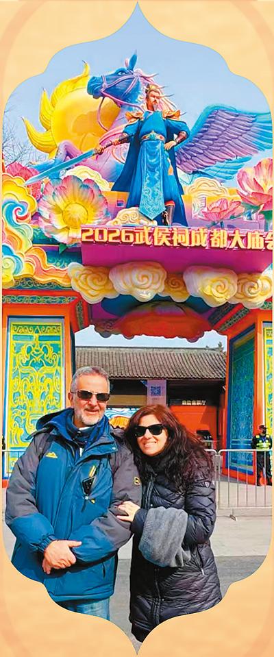 意大利游客馬里齊奧和勞拉在四川成都武侯祠廟會。成都極自游國際旅行社供圖