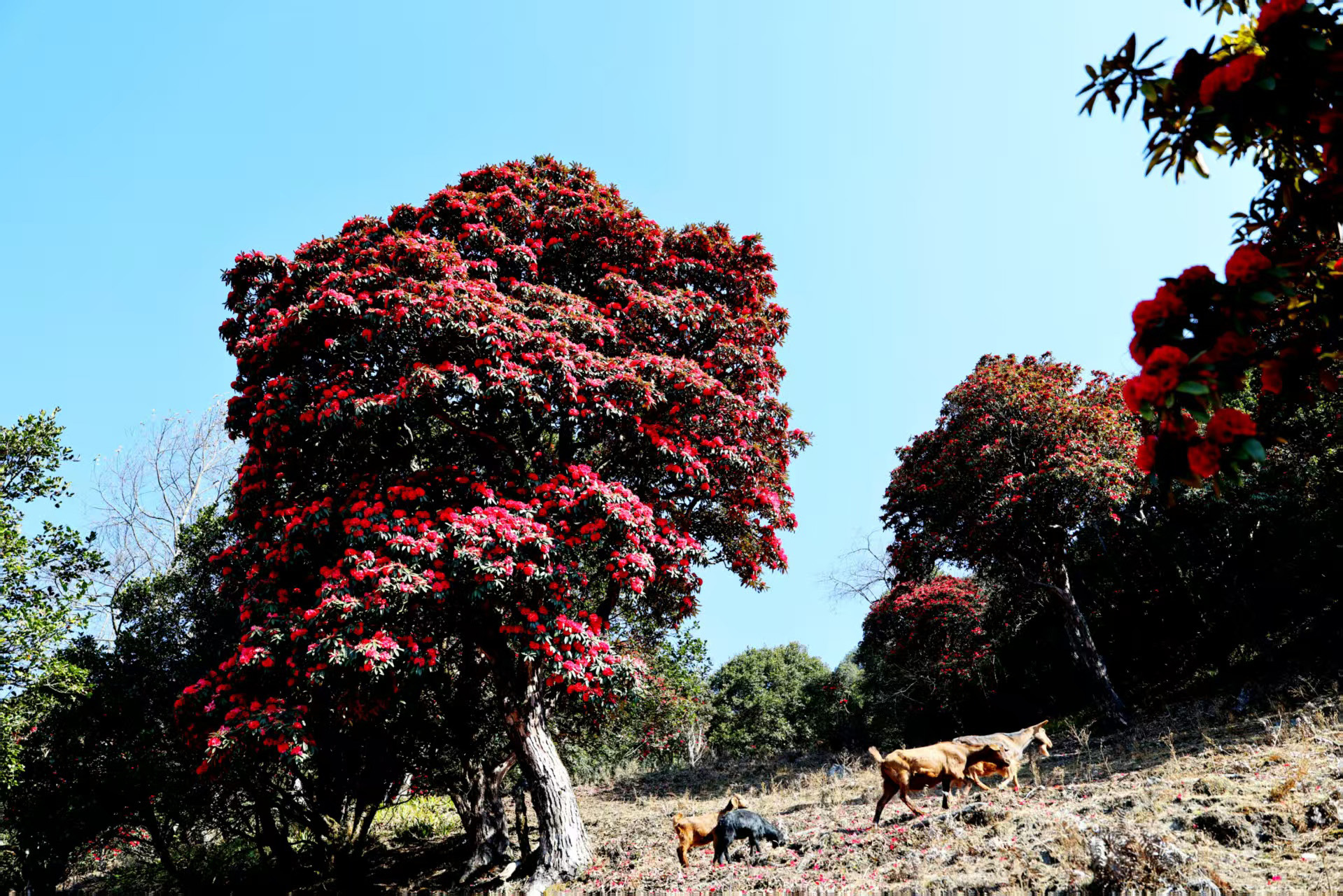 暖陽溫柔灑落,透過枝葉的縫隙,在花瓣上鍍上一層細(xì)碎的金光;澄澈的藍(lán)天如一塊藍(lán)寶石,與緋紅的花海相映,愈發(fā)顯得天地遼闊。微風(fēng)輕拂而過,花瓣簌簌飄落,似一場溫柔的花雨鋪滿山間小徑。樹下,馬兒踏著輕盈的步履悠閑踱步,羊群低頭輕嗅,偶爾撿拾一片飄落的花瓣,溫順的身影與絢爛的花海相映成趣,添了幾分田園詩意;枝頭間,小鳥穿梭翩飛,在花叢中尋覓清甜的花蜜,鳥鳴與花香交織纏繞,為靜謐的春日山林注入了滿滿的生機(jī)。