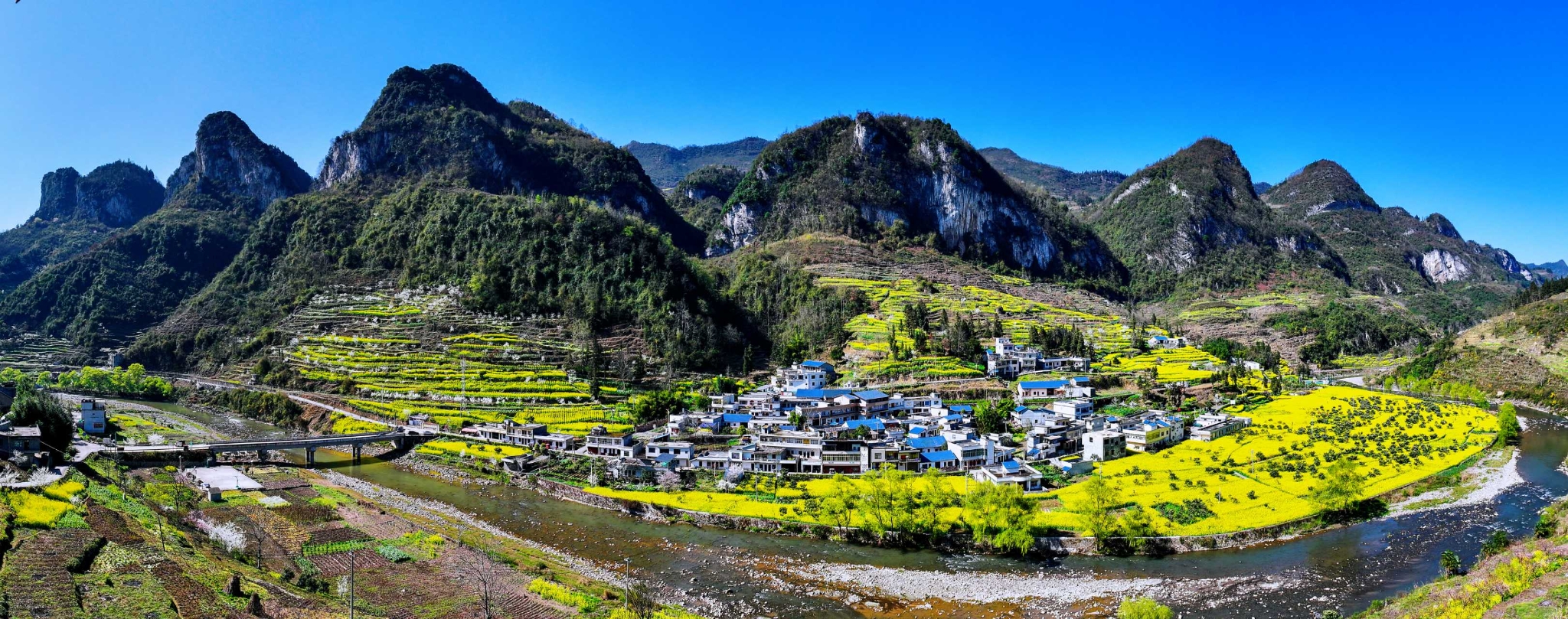 陽春三月,鎮(zhèn)雄縣花朗鄉(xiāng)5300畝油菜花再度進入盛花期,金黃的花海與青山綠水交相輝映,在赤水河流域繪就出一幅春意盎然的美麗畫卷。微風拂過,花浪翻滾,村舍、溪流、道路鑲嵌其間,引得四方游客紛至沓來,徜徉花海,感受這份春日獨有的美好。