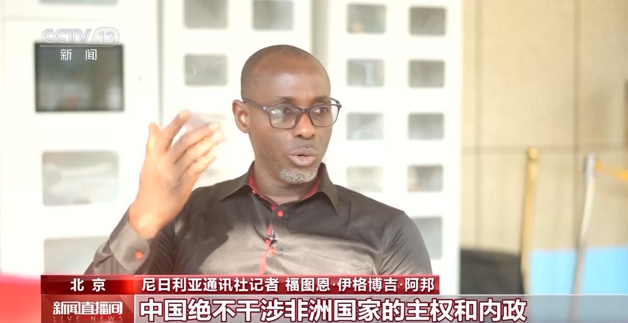 尼日利亞通訊社記者 福圖恩·伊格博吉·阿邦:我覺得非常榮幸能在這里提問。我感受到,中方高度重視非洲。中國(guó)絕不干涉非洲國(guó)家的主權(quán)和內(nèi)政,但會(huì)盡己所能,幫助非洲不斷發(fā)展進(jìn)步。這非常值得贊賞,令人振奮。