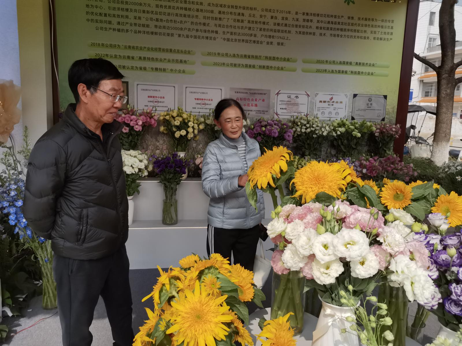 另一邊,云南佳海農(nóng)業(yè)展位同樣春意濃濃、人氣火爆。企業(yè)帶來12個花卉新品種,涵蓋洋桔梗、向日葵、大飛燕等熱門品類。