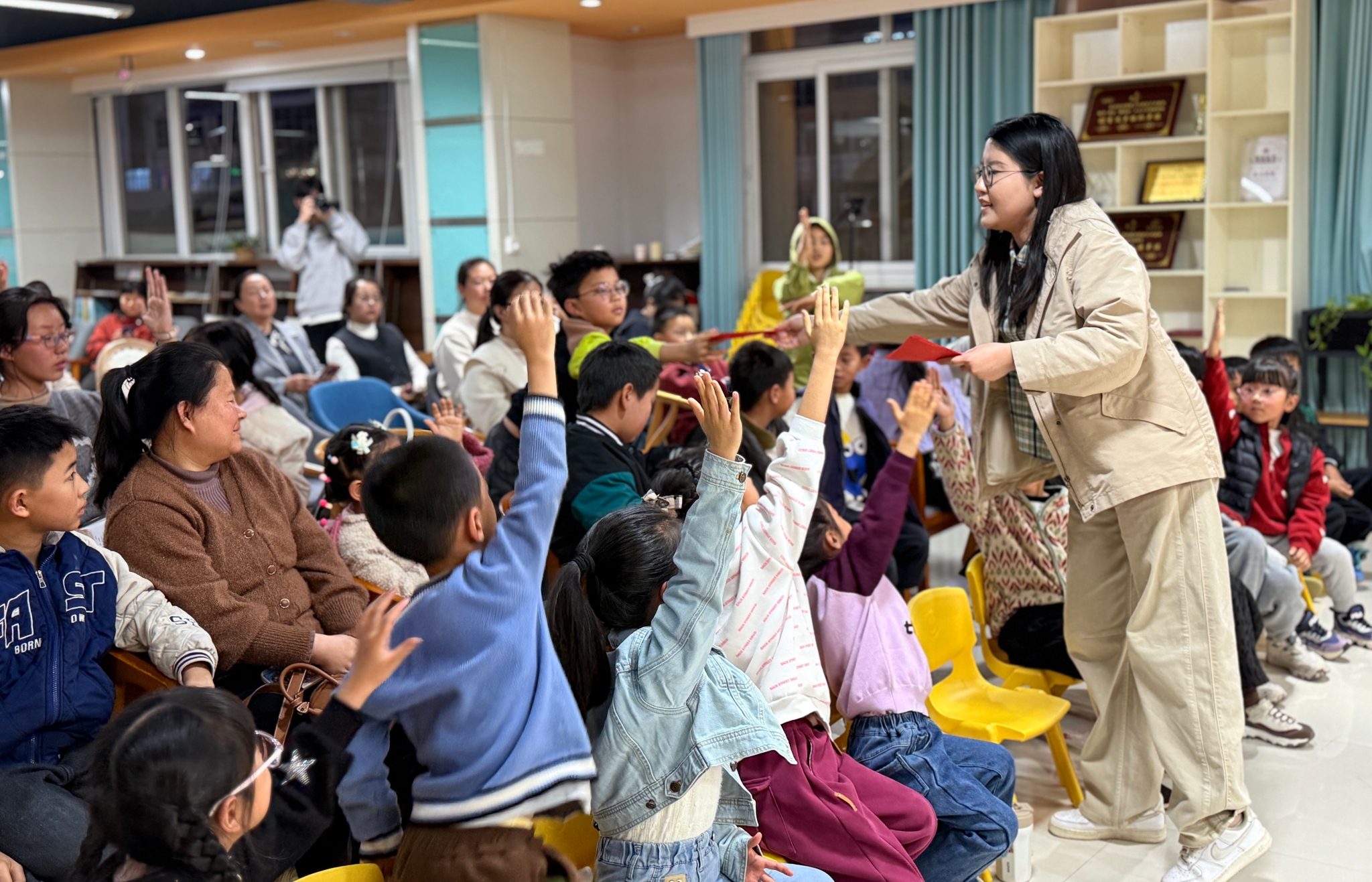2025年4月,在水田鄉(xiāng)“小候鳥暖窩窩”,“耕讀導師”白春艷化身“愛心媽媽”,為留守兒童帶來《愛讀書的一家人》繪本故事,通過分享閱讀心得和講述家庭趣事,讓孩子們感受到閱讀的魅力?!翱吹胶⒆觽儚男邼桔x躍參與,那種變化就是閱讀最大的意義。”白春艷感慨道。