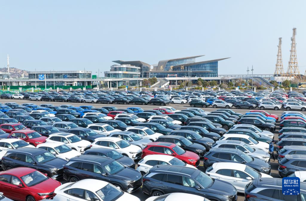 3月10日拍攝的江蘇省連云港港出口汽車堆場(無人機照片)。新華社發(fā)(王健民攝)