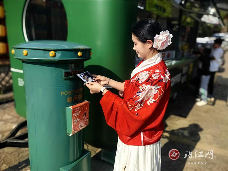 在主題郵局的“聲音小郵筒”前,張女士正對著麥克風輕聲錄制。幾秒后,一張印有她沖線照片的DIY明信片緩緩生成,掃碼即可將這段語音祝福嵌入其中。當她將這張“有聲明信片”投入郵筒,一段關于奔跑與春天的記憶,也正式踏上了跨越山海的旅程。