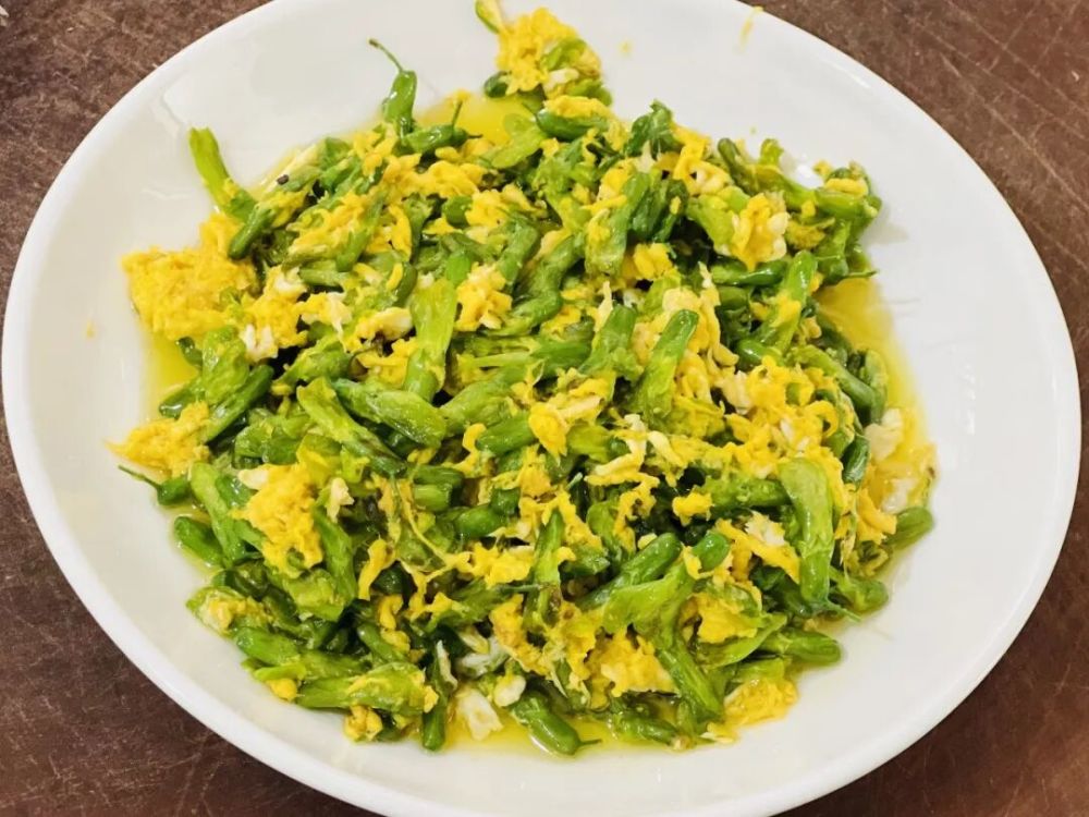 金雀花炒雞蛋,有個雅號叫“山林嬌香”,光聽這名兒,仿佛那混著花香的蛋香就已撲到鼻尖。最簡單的吃法是做湯,水滾后撒一把花瓣,瞬間清甜四溢;若與肉末同汆,湯沸即起,鮮香撲鼻,入口是淡淡的芬芳與回甘,叫人惦念。