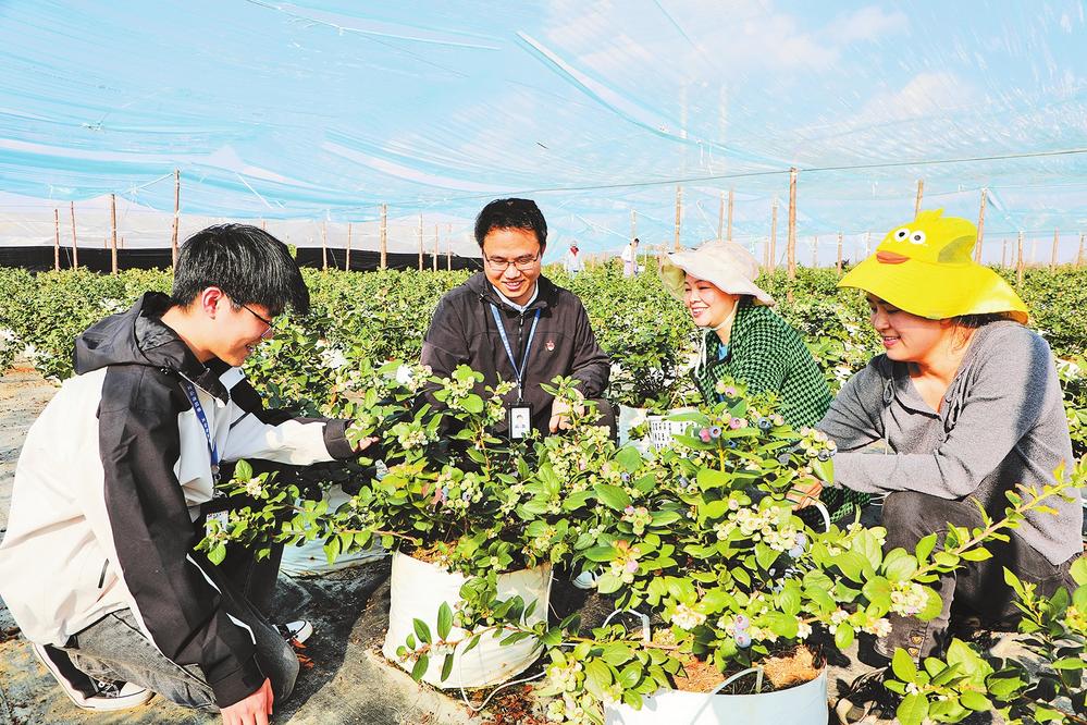文山市新平街道高末社區(qū)里,草莓、豌豆角、藍莓等作物長勢喜人。市紀委監(jiān)委把監(jiān)督“探頭”架設到田間地頭,深入了解特色產(chǎn)業(yè)發(fā)展、農產(chǎn)品銷售、惠農政策落實等情況,推動解決群眾急難愁盼問題,助力群眾增收。圖為近期市紀委監(jiān)委干部實地走訪藍莓基地。(云南日報 通訊員王銘堅/攝)