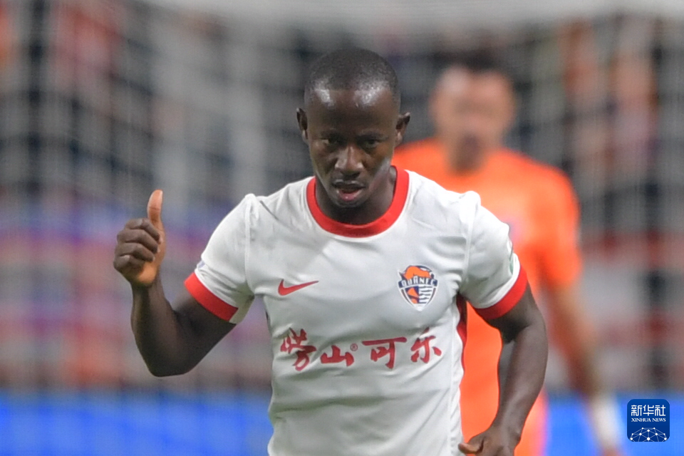 3月7日,青島海牛隊(duì)球員葉博亞在比賽中慶祝進(jìn)球。