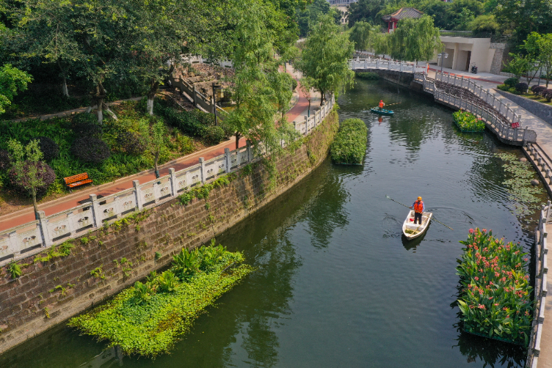 圖為工作人員在重慶永川臨江河紅旗河段清漂(資料照片)。新華社記者 王全超 攝