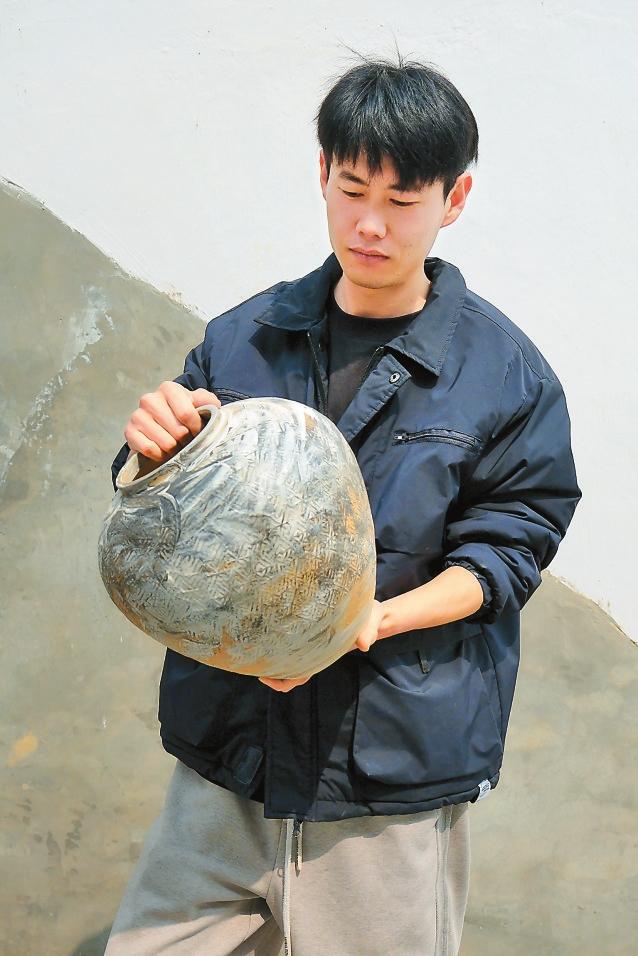 楊丕翔展示陶器。 通訊員楊瀅銖/攝