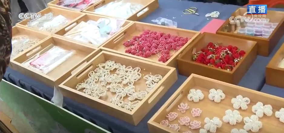 游客多了,村里辦起了特色市集。這個叫珠繡,是蕭山當?shù)氐姆沁z項目。代表性傳承人正利用以珠子、亮片等繡出各種圖案,這款李花造型的小掛飾就別具特色?,F(xiàn)場還有許多李花美食,比如李花酥、李花糕,漂亮精致。這款李子飲是返鄉(xiāng)創(chuàng)業(yè)的年輕人開發(fā)的,嘗一口,有李子的清甜,很爽口。