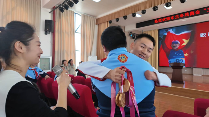 “能見(jiàn)到世界冠軍十分震撼興奮,我從蔡佳云哥哥身上深刻理解了堅(jiān)持的意義?!卑四昙?jí)學(xué)生田恒炳感慨道。聽(tīng)障學(xué)生余潔也用手語(yǔ)堅(jiān)定表達(dá),要以蔡佳云為榜樣,努力奮進(jìn)、不負(fù)韶華。宣講結(jié)束后,孩子們紛紛上前與蔡佳云擁抱合影,親手觸摸一枚枚沉甸甸的金牌,榜樣的力量在指尖與心間真實(shí)可感。