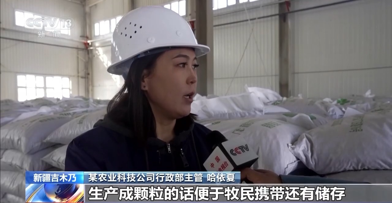某農(nóng)業(yè)科技公司行政部主管 哈依夏:生產(chǎn)成顆粒,便于牧民攜帶和儲(chǔ)存,除了新疆以外,還有往河北、內(nèi)蒙古、甘肅等地方銷售。