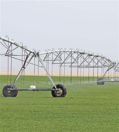 指針式噴灌機(jī)正在作業(yè)。