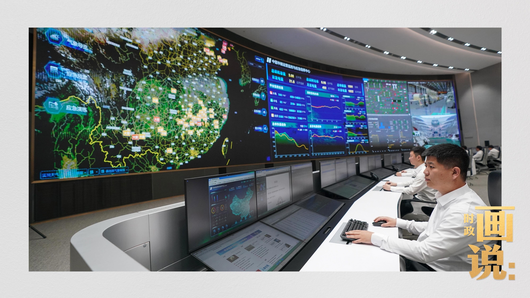 △中國華能運(yùn)營監(jiān)控與應(yīng)急指揮中心,工作人員正在忙碌