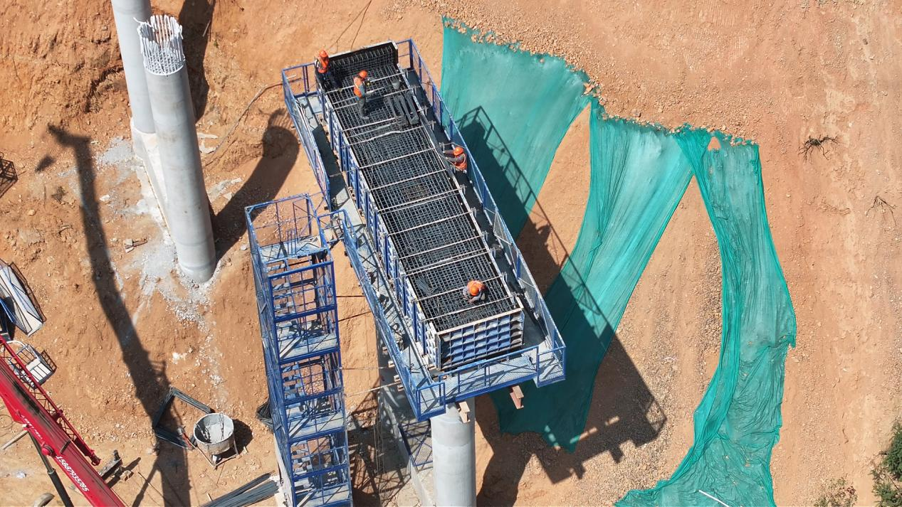 據(jù)了解,除了隧道工程,西廣高速控制性工程之一的龍蚌特大橋建設也在穩(wěn)步推進中。大橋建設現(xiàn)場,10余個高墩拔地而起,塔吊長臂舒展,施工人員分工協(xié)作,有的綁扎鋼筋、有的澆筑混凝土,一派繁忙有序的建設景象?!褒埌鎏卮髽蛉碳s1公里,共有17個高墩,目前我們已投入施工人員80多人,正在進行橋梁下部結構、中間承臺空心墩的施工?!蔽鲝V高速六分部工程部部長鄭春說。