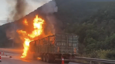 杭瑞高速 掛車突然起...