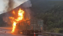 杭瑞高速 掛車突然起火 消防緊急處置