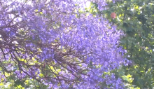 教場中路 藍(lán)花楹零星開放 提前邂逅紫色浪漫