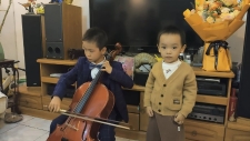 我家三歲孫孫與小表哥背誦《...