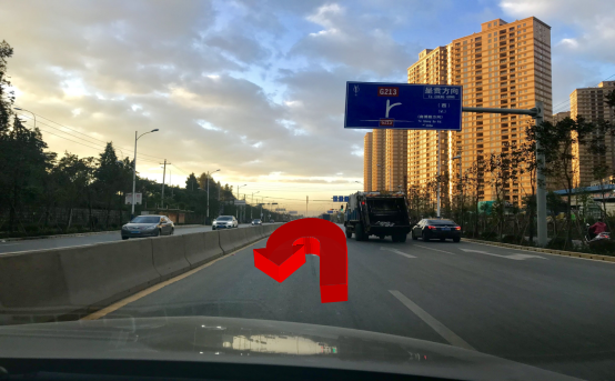 5、在交通信號(hào)燈處調(diào)頭,往呈貢方向行駛