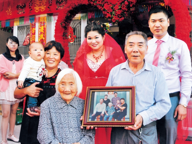 2014年國慶節(jié),葉興法一家四代同堂的“全家福”。 徐永輝攝于2014年