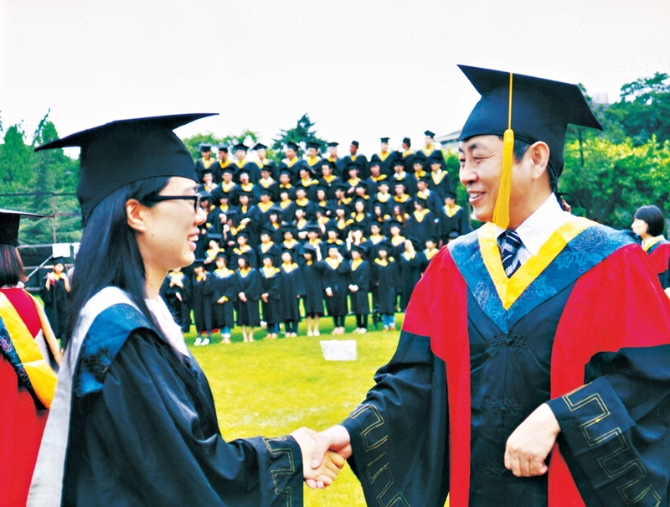 ?趕到學(xué)校的時候,操場上已經(jīng)站滿了穿著學(xué)士服的同學(xué)們。