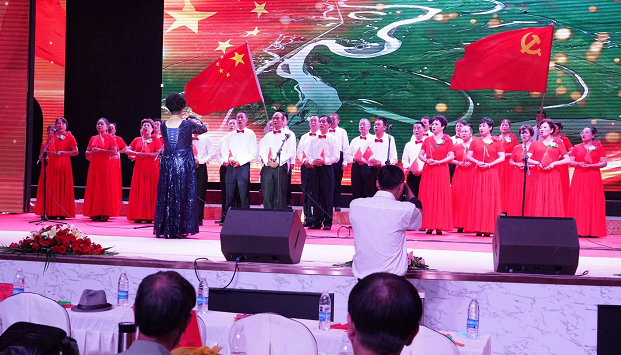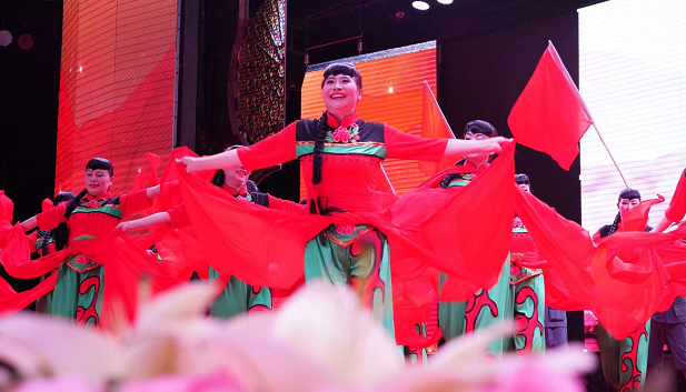 文藝匯演在雄壯的國歌聲中拉開了序幕,《紅星閃閃》《今天是你的生日》《我和我的祖國》《黨旗飄飄》等一個(gè)個(gè)節(jié)目輪番上演,舞蹈、合唱、朗誦等一出出不同形式的節(jié)目接連登臺(tái)。一曲曲經(jīng)典紅歌、一幕幕精彩的演出,一次次熱鬧的互動(dòng)帶領(lǐng)現(xiàn)場觀眾一同穿越歷史的烽煙,重溫黨的光輝歷程,在時(shí)代的樂章里唱響奮進(jìn)新征程的赤誠與豪邁。匯演最后以一首男女二重唱《不忘初心》落下帷幕,整場演出高潮迭起,節(jié)目內(nèi)容感人至深。