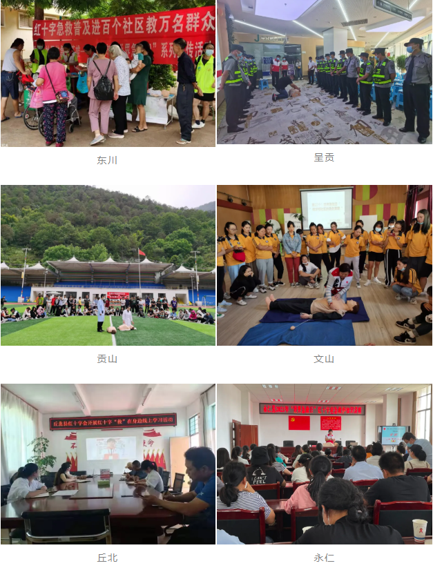 結(jié)合疫情防控要求,動員組織玉溪師院、玉溪衛(wèi)校、玉溪農(nóng)職院在校內(nèi)開展活動,助力平安校園建設(shè),共開展主題宣傳活動7次,應(yīng)急救護(hù)培訓(xùn)4次,2000 余名學(xué)生參加培訓(xùn);