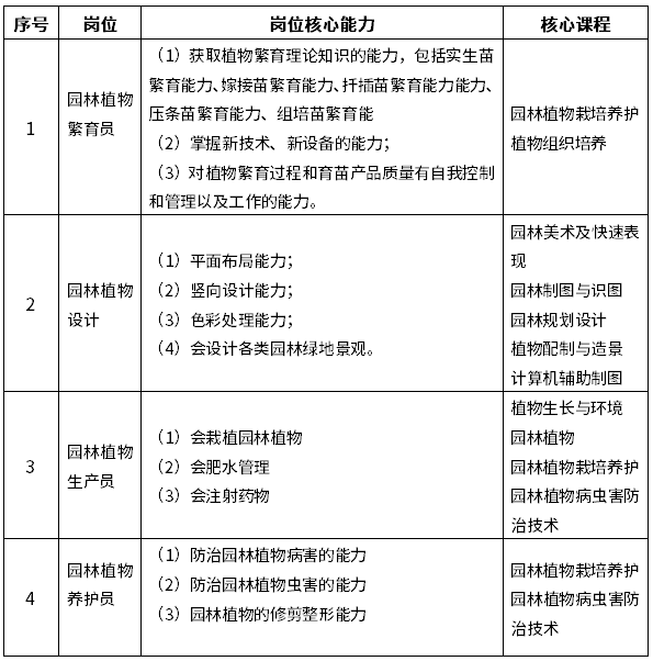 本專業(yè)立足云南、面向全國、對接?xùn)|南亞地區(qū),錨定城市園林綠化、城建部門、市政園林、公用事業(yè)、城鄉(xiāng)規(guī)劃建設(shè)管理等產(chǎn)業(yè)鏈的關(guān)鍵崗位群;培養(yǎng)德智體美勞全面發(fā)展,具有一定科學(xué)文化水平,良好人文素養(yǎng)、職業(yè)道德和創(chuàng)新意識,精益求精的工匠精神,較強(qiáng)的就業(yè)能力和可持續(xù)發(fā)展能力的社會(huì)主義建設(shè)者和接班人;依托“一體兩翼”人才培養(yǎng)模式,培養(yǎng)具備相關(guān)園林植物設(shè)計(jì)、園林植物栽培養(yǎng)種苗繁育、園林產(chǎn)品儲(chǔ)運(yùn)加工、園林產(chǎn)品營銷等崗位核心能力,熟悉本崗位的工作流程,能夠從事植物生產(chǎn)與養(yǎng)護(hù)、園林植物設(shè)計(jì)、城鄉(xiāng)園林規(guī)劃設(shè)計(jì)等工作的高素質(zhì)技術(shù)技能人才。