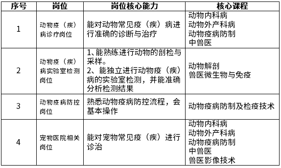 主要面向畜牧獸醫(yī)行業(yè)從事動物疾病診治防控、動物衛(wèi)生監(jiān)督等工作崗位,適應(yīng)社會主義市場經(jīng)濟(jì)建設(shè)需要,擁護(hù)黨的領(lǐng)導(dǎo),德、智、體、美、勞全面發(fā)展,具有較高綜合素質(zhì)和較強(qiáng)社會適應(yīng)能力,掌握動物疾病診斷、治療、動物疫病預(yù)防控制等知識和方法,具有突出的動物疾病治療和防控能力的高素質(zhì)技術(shù)技能型專門人才。