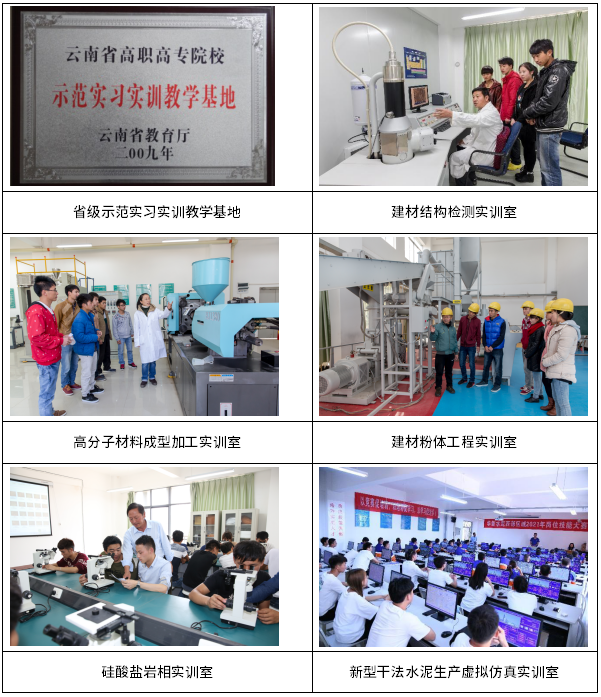 建材實訓(xùn)基地建筑面積2799.78m2,設(shè)備價值997.5635萬元,是云南省校內(nèi)示范實訓(xùn)基地和專業(yè)實習(xí)實訓(xùn)教學(xué)基地,融教學(xué)、培訓(xùn)、職業(yè)技能鑒定和技術(shù)研發(fā)于一體,擁有“建筑材料檢測虛擬仿真實訓(xùn)室”、“材料化學(xué)分析實訓(xùn)室”、“建材結(jié)構(gòu)檢測實訓(xùn)室”、“新型建材功能實訓(xùn)室”、“新型干法水泥生產(chǎn)虛擬仿真實訓(xùn)室”等26個設(shè)備先進(jìn)、功能齊全、貼近生產(chǎn)實際的實訓(xùn)室。近年來,相繼與云南水泥建材集團、云南建投建材科技有限公司、云南科侖工程質(zhì)量檢測有限公司、云南省塑料協(xié)會等企業(yè)建立了深度校企合作關(guān)系,雙方在學(xué)生實訓(xùn)、企業(yè)員工培訓(xùn)、職業(yè)技能鑒定、技術(shù)研發(fā)等多領(lǐng)域展開合作。