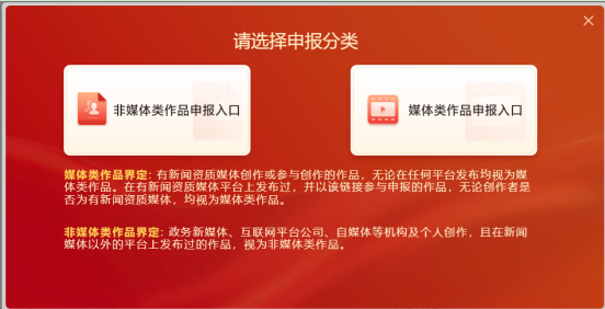 注:填報前需先選擇申報類別為“媒體類作品”或“非媒體類作品”。