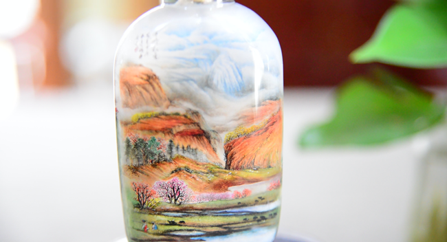 一支特制的毛筆,一個鴨蛋大小的鼻煙壺,孫鴻雁調(diào)好顏料端坐案前,右手伸入口小如豆的水晶壺內(nèi)反手作畫,一會功夫,乾坤世界皆顯于這寸小之器。《云南守藝人》第八集,看滇派內(nèi)畫創(chuàng)始人孫鴻雁。