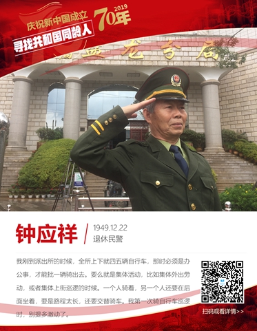 “當年巡邏,我拿著一個大手電,騎著自行車就去了。證明我是警察,就看我的衣服?!辩姂檎f,如今的街面巡邏實行“巡特一體”防控勤務新模式,群眾看到警燈閃爍,就知道是警察巡邏。鐘應祥從警后第一次騎自行車都感到無比激動,如今,警務用車已經(jīng)應有盡有,有的甚至連他也叫不出名字。[詳情]