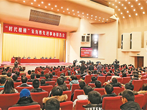 - 12月30日,由中央宣傳部、國務(wù)院扶貧開發(fā)領(lǐng)導(dǎo)小組辦公室、中國工程院、中共云南省委聯(lián)合舉辦的“時(shí)代楷?!敝煊杏孪冗M(jìn)事跡報(bào)告會(huì)在北京人民大會(huì)堂舉行。來自中國工程院、國務(wù)院扶貧辦、云南省的干部職工代表,以及中國農(nóng)業(yè)大學(xué)、北京化工大學(xué)師生代表和首都各界干部群眾代表700余人參加報(bào)告會(huì)。