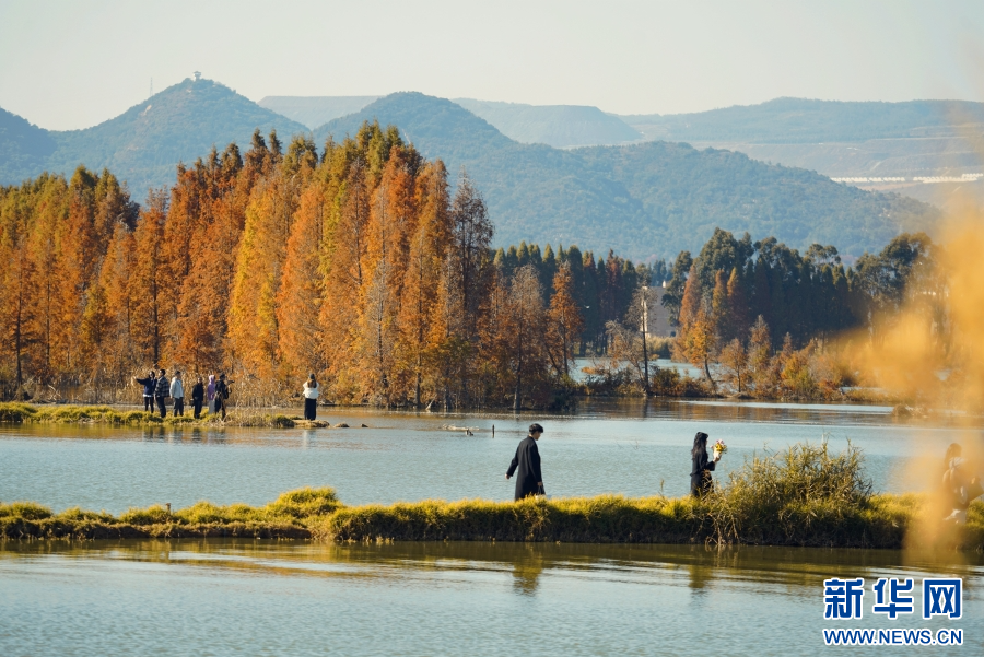 ??近期,云南省昆明市晉寧區(qū)的海埂村又迎來一波“打卡潮”。冬日的午后,安靜巡游的“鯨魚”與“滇池藍(lán)”“水杉紅”色彩相融、美美與共,湖面飛舞的紅嘴鷗和濕地鳥類靈動(dòng)翻飛,繪成這個(gè)冬日美艷動(dòng)人的一幅畫,吸引眾多游客前來“打卡”。