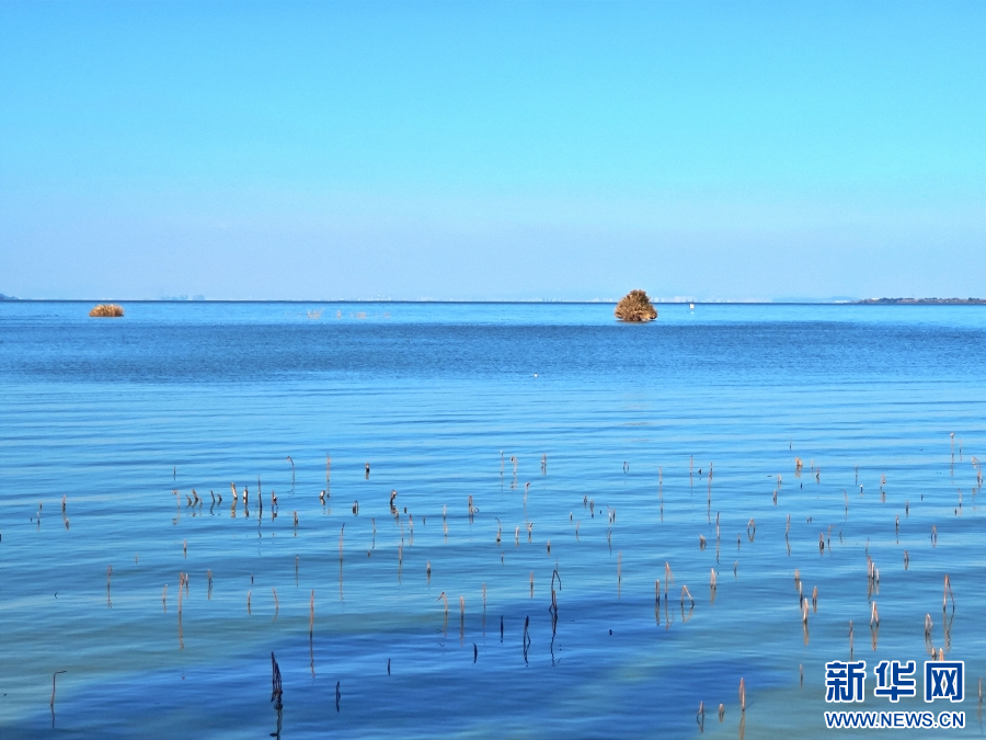 滇池湖水碧藍(lán)如洗(1月13日攝)。新華網(wǎng)發(fā)(楊景浩 攝)