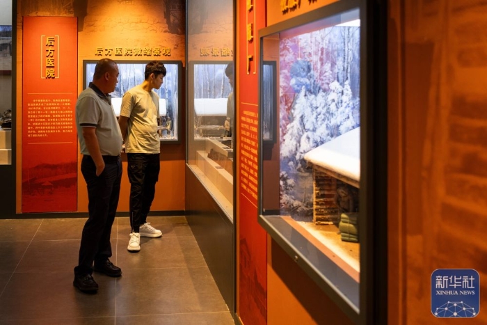 ??↑ 6月17日,游客在七星山國家森林公園內的集賢縣紅色抗聯(lián)體驗館參觀。