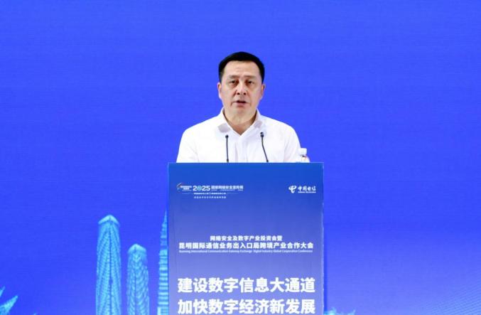 劉洪建代表市委、市政府對各位嘉賓的到來表示歡迎,對大家長期以來給予昆明的關(guān)心支持表示感謝。他說,昆明是我國面向南亞東南亞開放的重要門戶、“數(shù)字云南”建設(shè)的核心樞紐,也是云南條件最好、實力最強的產(chǎn)業(yè)基地。近年來,昆明市統(tǒng)籌推進數(shù)字基礎(chǔ)設(shè)施建設(shè)、數(shù)字技術(shù)應(yīng)用、數(shù)字產(chǎn)業(yè)培育,數(shù)字經(jīng)濟呈現(xiàn)蓬勃發(fā)展的態(tài)勢。昆明國際通信業(yè)務(wù)出入口局作為通信網(wǎng)絡(luò)的國家一級節(jié)點,時延低、覆蓋面廣、穩(wěn)定性強,將為昆明發(fā)展數(shù)字產(chǎn)業(yè)帶來重大機遇。希望與大家在基礎(chǔ)設(shè)施、數(shù)字產(chǎn)業(yè)、跨境數(shù)據(jù)、網(wǎng)絡(luò)安全等領(lǐng)域加強合作,攜手共建國際數(shù)據(jù)樞紐、共促產(chǎn)業(yè)融合發(fā)展、共拓國際廣闊市場、共筑安全防護屏障,加快把昆明打造為立足西南、輻射南亞東南亞的流量匯聚中心、區(qū)域算力中心、數(shù)據(jù)要素服務(wù)中心、數(shù)字產(chǎn)業(yè)創(chuàng)新發(fā)展中心。