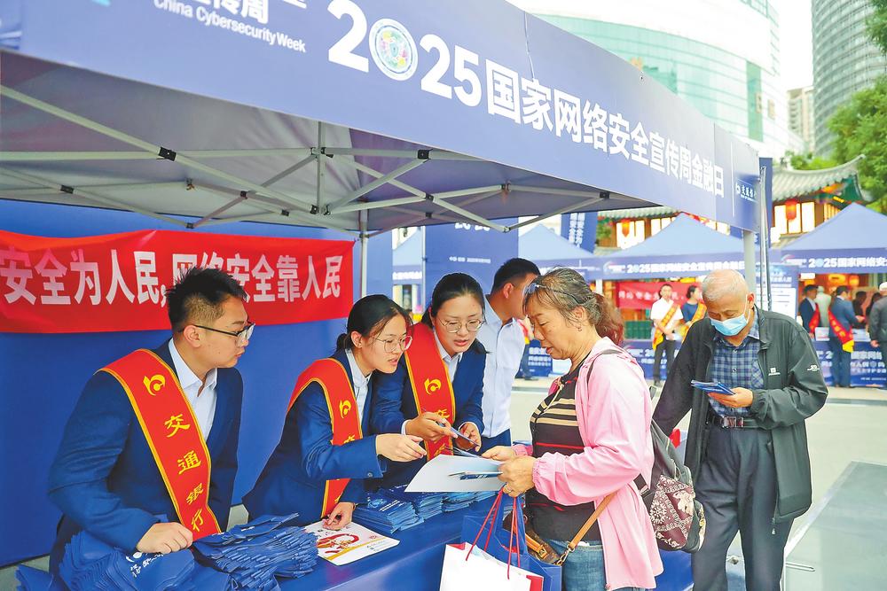 9月19日,2025年國家網(wǎng)絡(luò)安全宣傳周“金融日”活動(dòng)在昆明舉行,各金融機(jī)構(gòu)向市民宣傳網(wǎng)絡(luò)安全知識(shí)。 云南日報(bào) 記者陳飛/攝